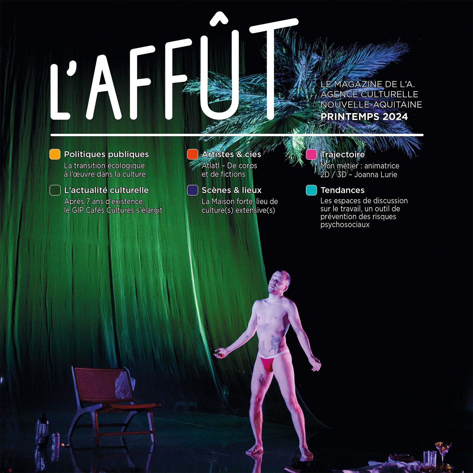 Découvrez L’Affût printemps 2024, le magazine de l’A. agence culturelle Nouvelle-Aquitaine.