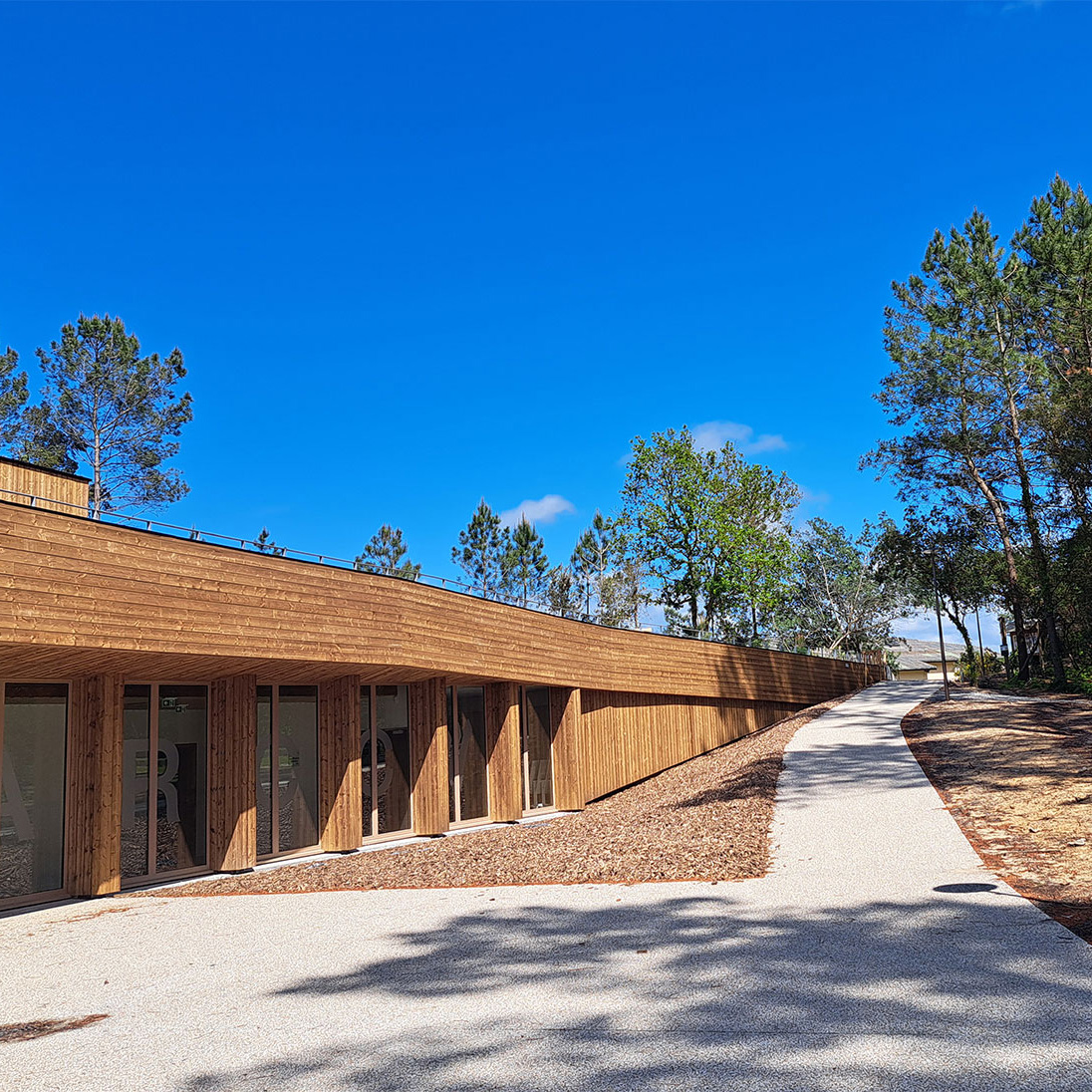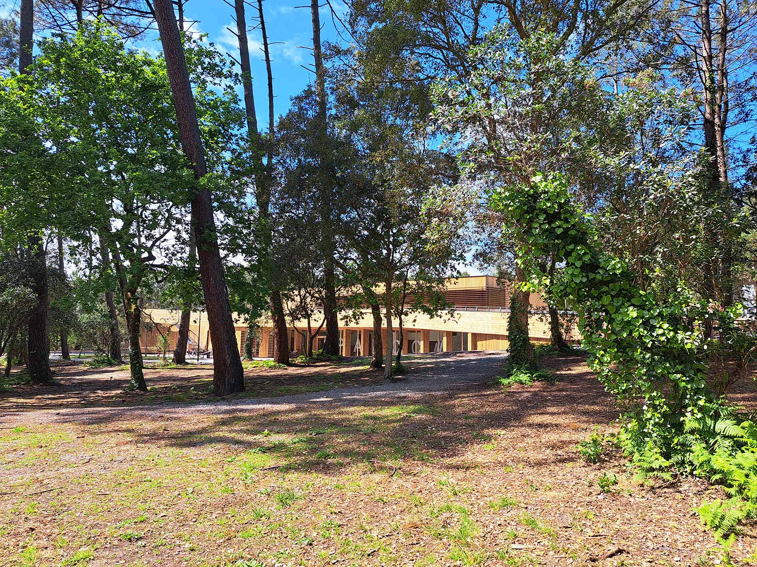 Situé au cœur de la commune de Labenne, le bâtiment s’inscrit dans un cadre privilégié, au milieu de pins et de chênes lièges, à proximité du « théâtre de verdure ». Le PARCC invitera ainsi à une expérience singulière dans la nature et créera des ponts entre les paysages et le patrimoine du territoire.