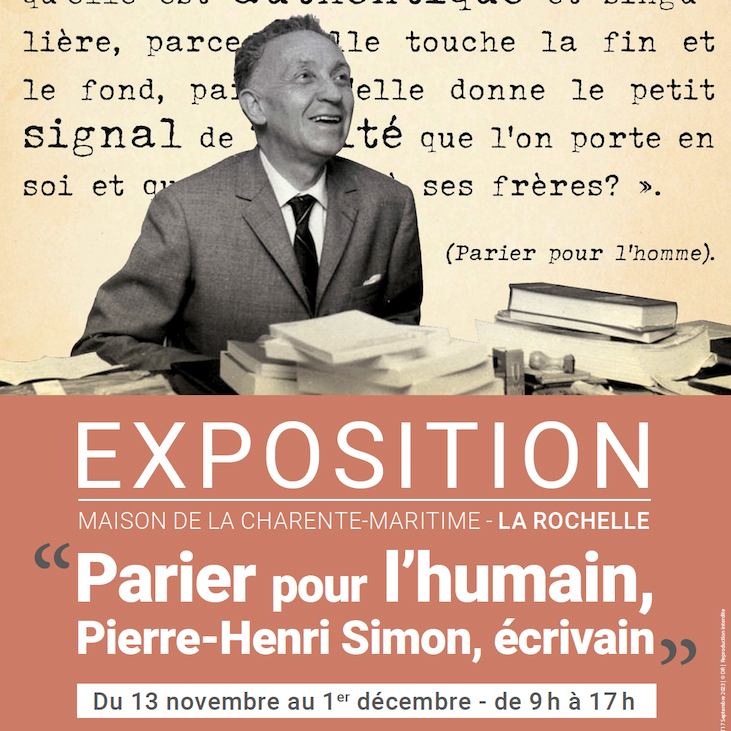 Écrivain, essayiste, professeur de lettres, critique, romancier, journaliste, académicien français, Pierre-Henri Simon, natif de Saint-Fort sur Gironde, fut un témoin engagé de l’histoire tourmentée de la France au 20e siècle. Dans sa chair et par sa plume. C’est sa trajectoire exceptionnelle que cette exposition s’attache à retracer.