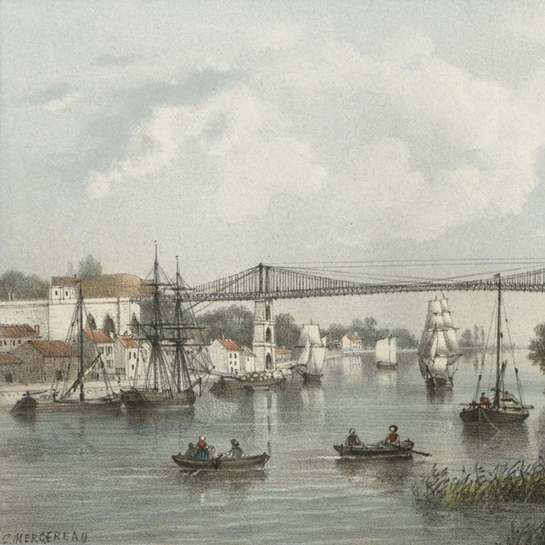 La navigation devant le port de Tonnay-Charente, vers 1860. Mercereau Charles. (c) Région Nouvelle-Aquitaine, Inventaire général du patrimoine culturel / (c) Médiathèque Michel-Crépeau, La Rochelle.