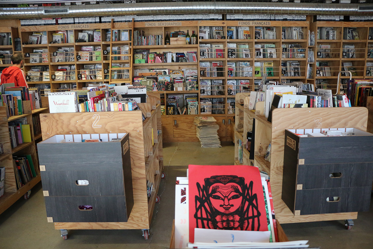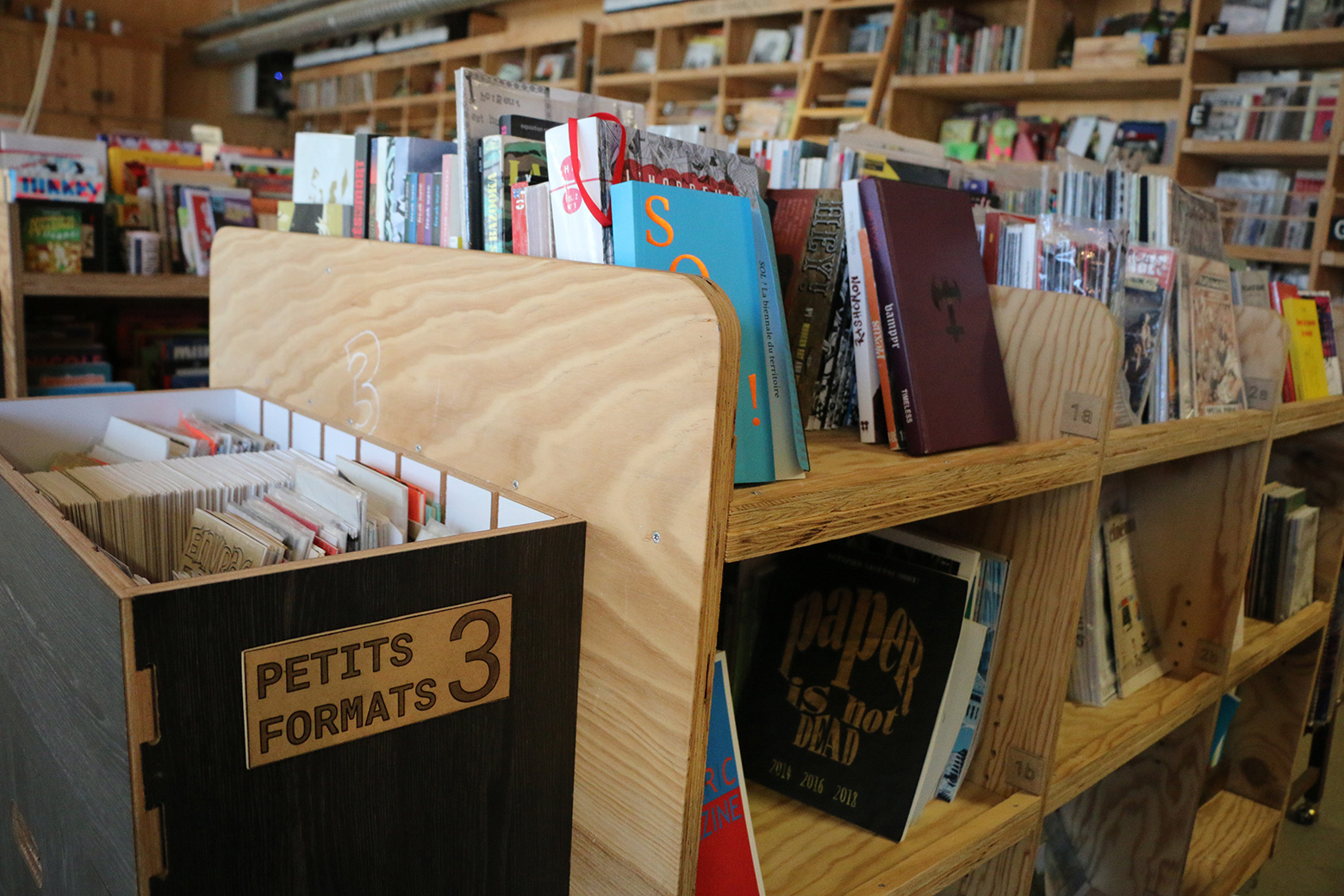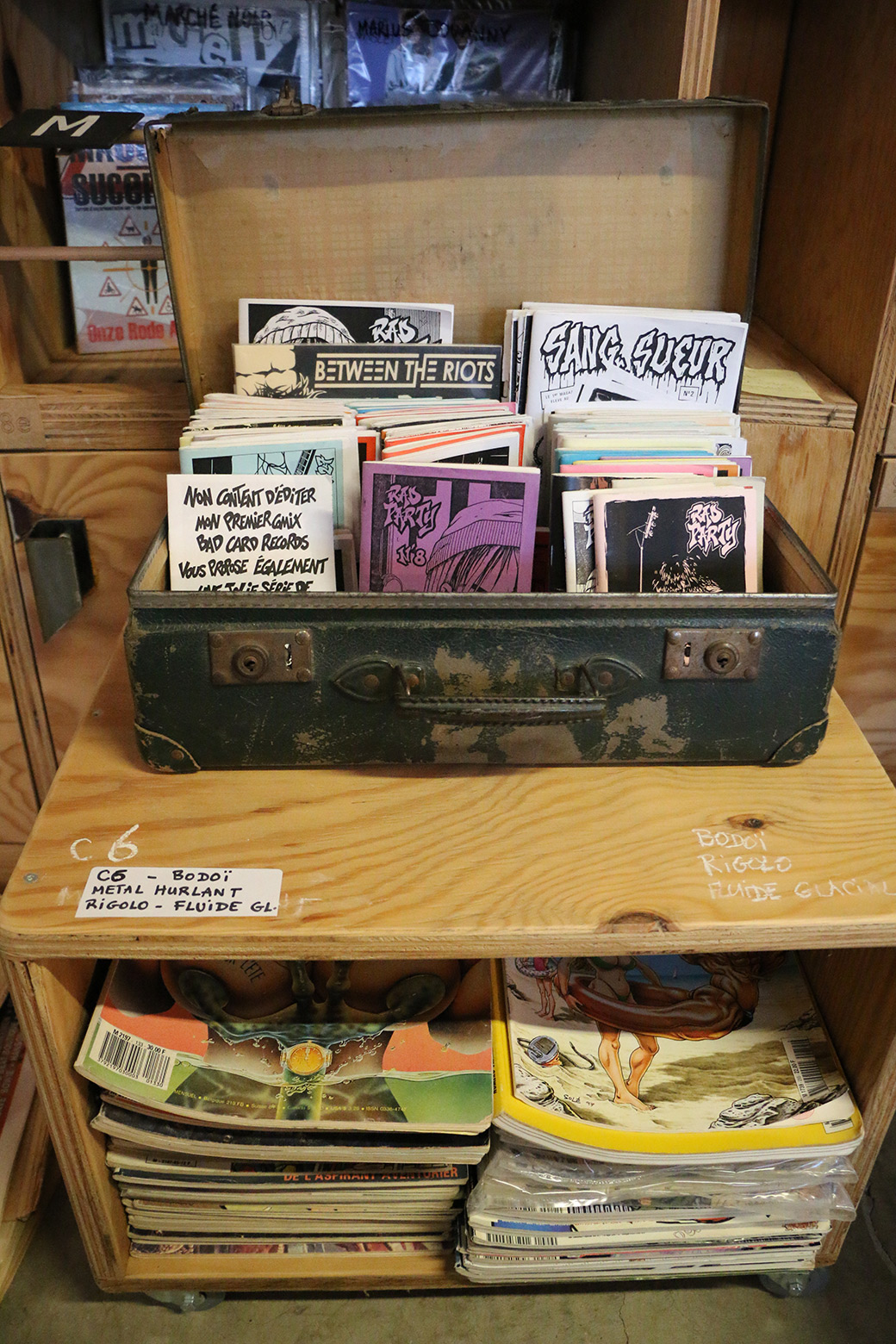 Dans leurs tous nouveaux locaux dans le quartier Saint-Seurin à Bordeaux — qu’ils partagent avec deux autres labels — nous sommes loin des entrepôts géants où les palettes s’empilent. Ici, les vinyles ne restent jamais longtemps. La plupart partent directement chez les distributeurs, en France et en Europe, dès la sortie du pressage ; d’autres sont envoyés aux groupes qui partent en tournée et la partie restante se partage entre les rayonnages derrière les bureaux des salariés et un garage qui leur sert de lieu de stockage. Une manière de limiter les transports inutiles et de réduire la taille des stocks.