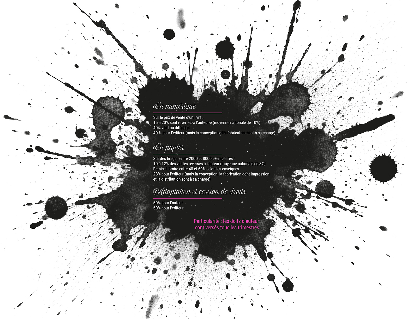 Black Ink verse les droits d’auteur sur les titres vendus tous les trimestres et non annuellement comme pratiqué massivement dans le monde de l’édition.