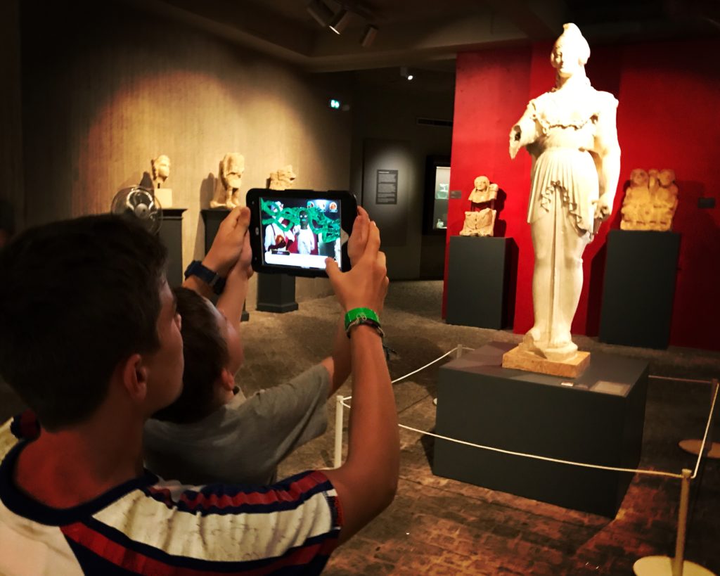 • La superposition d’un univers fictionnel au service des collections du musée. À l’aide de la réalité augmentée, le jeu se superpose aux collections avec la volonté de ne pas s’y substituer pour favoriser une découverte des objets. Comme évoqué dans une précédente chronique, une étude menée au Palais des Beaux-arts de Lille revient sur les impacts émotionnels et le rapport aux œuvres qu’implique une visite à l’aide d’une tablette. Grâce à différentes mesures émotionnelles (bracelet épidermique) et d’attention (mesures oculométriques), cette étude démontre que l’usage d’une tablette auprès des jeunes publics, peut contribuer à allonger leurs temps de visites et leur capacité d’appropriation des œuvres. Un tel constat semble aussi avoir été relevé par le musée Sainte-Croix.