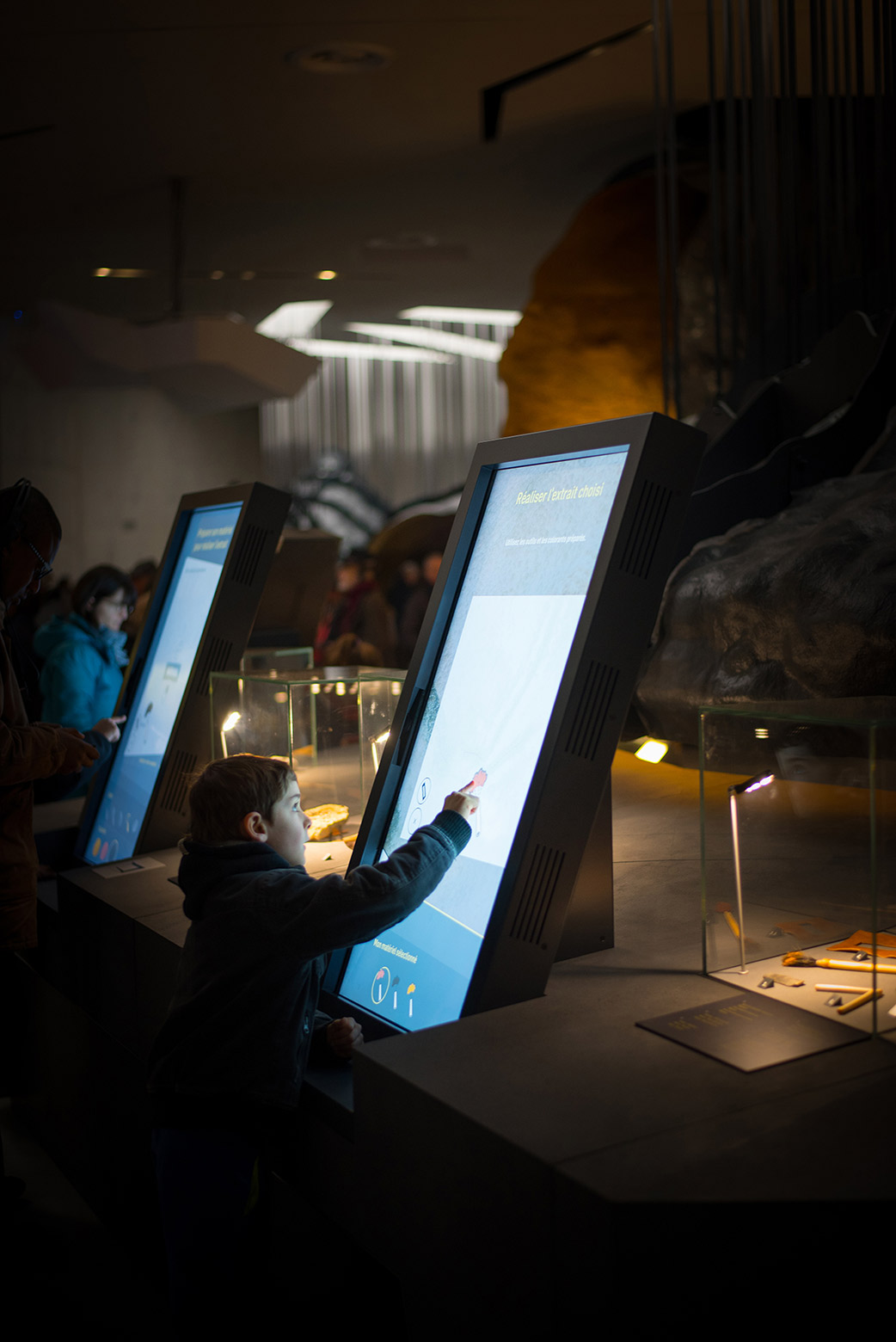 • Concevoir des dispositifs interactifs, immersifs et participatifs au service des visiteurs. Cette volonté d’interactions peut mobiliser des dispositifs technologiques spécifiques tels que des détecteurs de mouvements (la technologie RFID mobilisée pour le compagnon de visite de la Cité en est un bon exemple). Ces dispositifs nécessitent donc d’anticiper d’autant plus la place des gestes et du corps des visiteurs que par rapport à un parcours scénographique classique. Une approche expérimentale physique est donc essentielle pour favoriser une expérience globale claire.