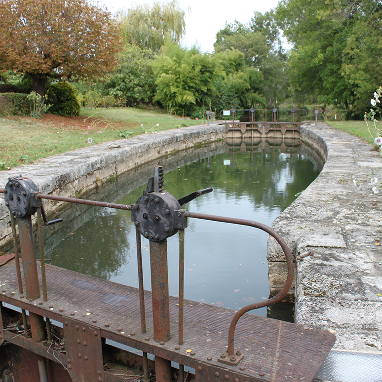 Porte aval de l’écluse de Chandos et maison éclusière à Montpon-Ménestérol