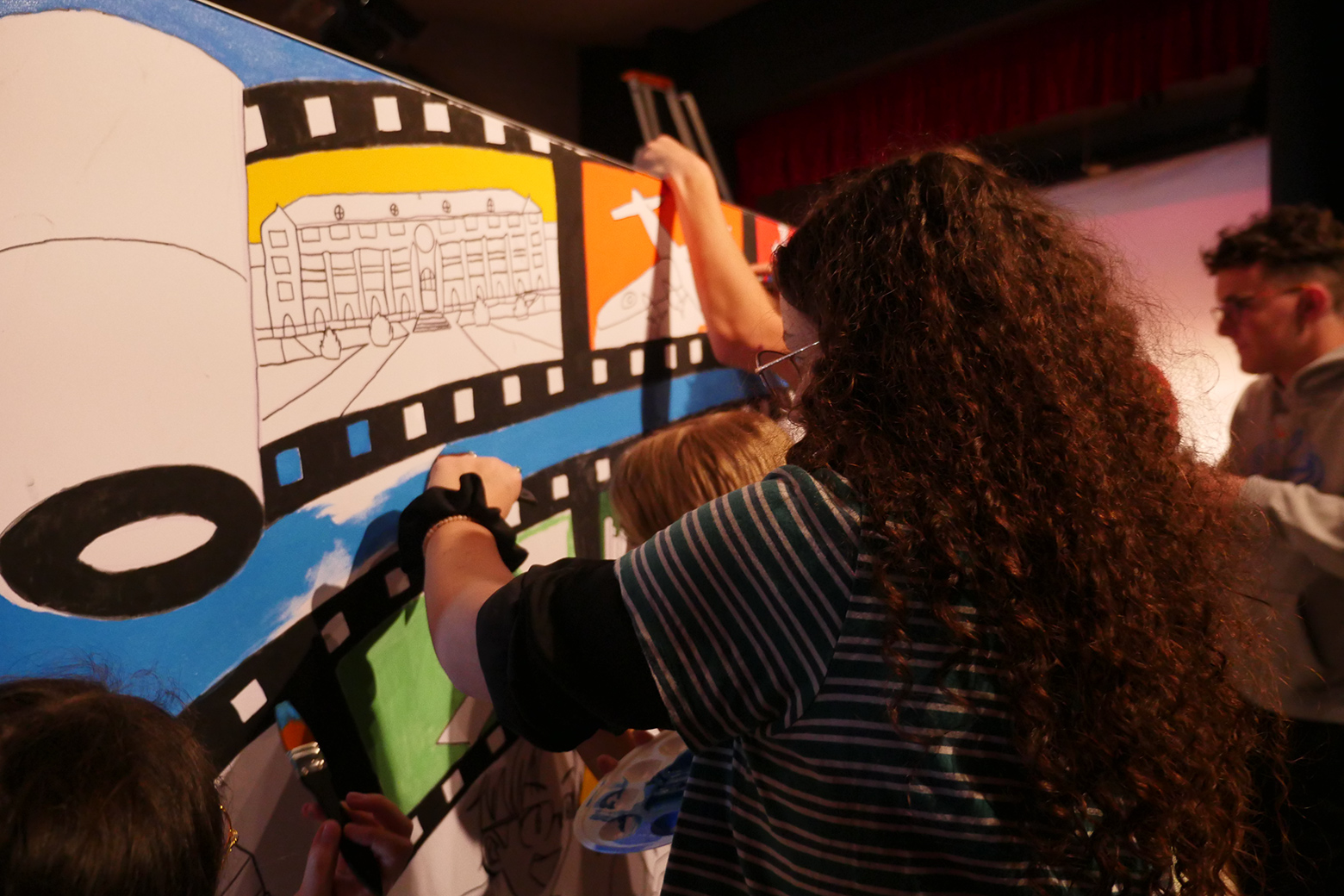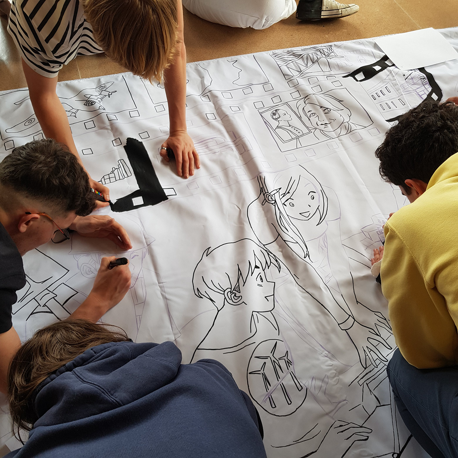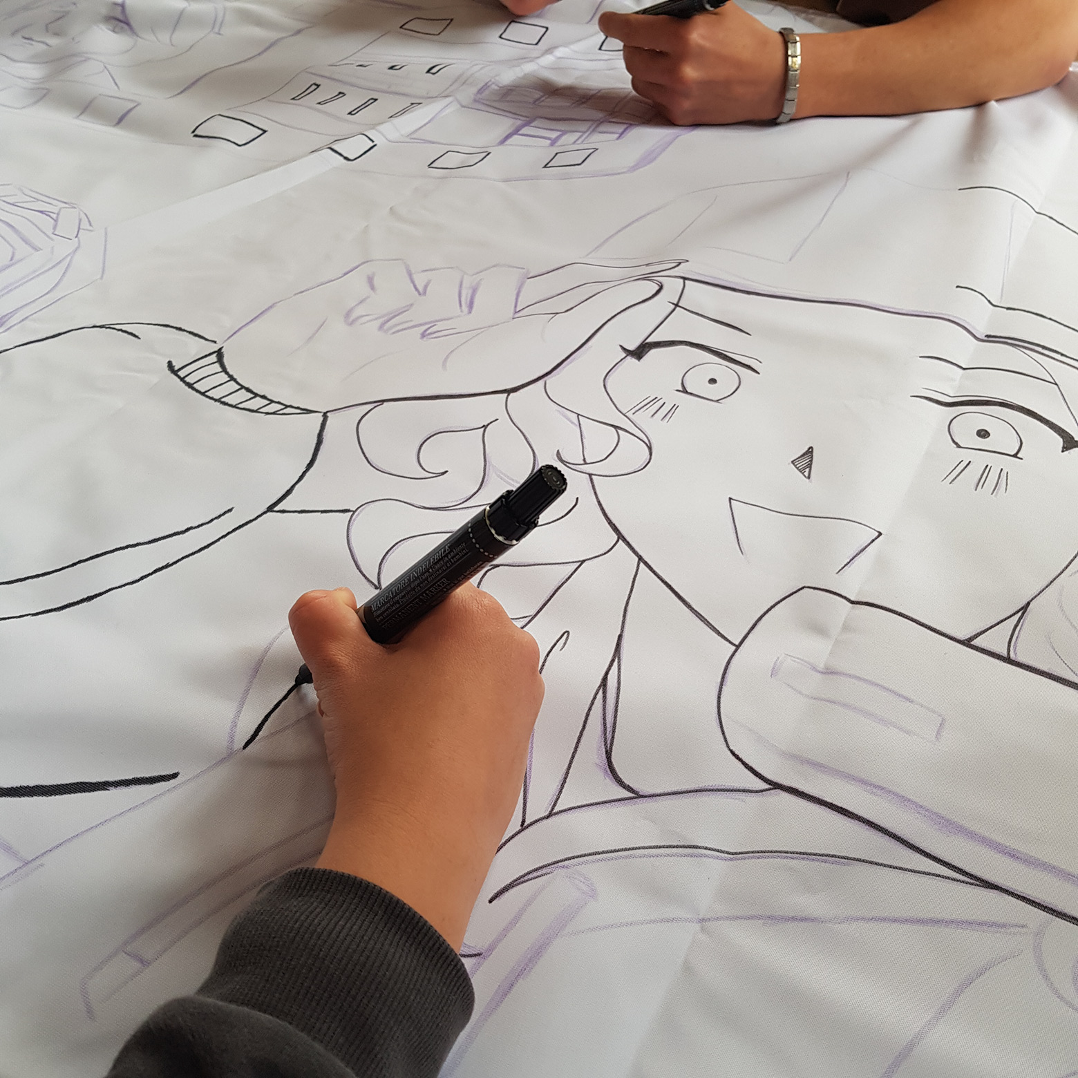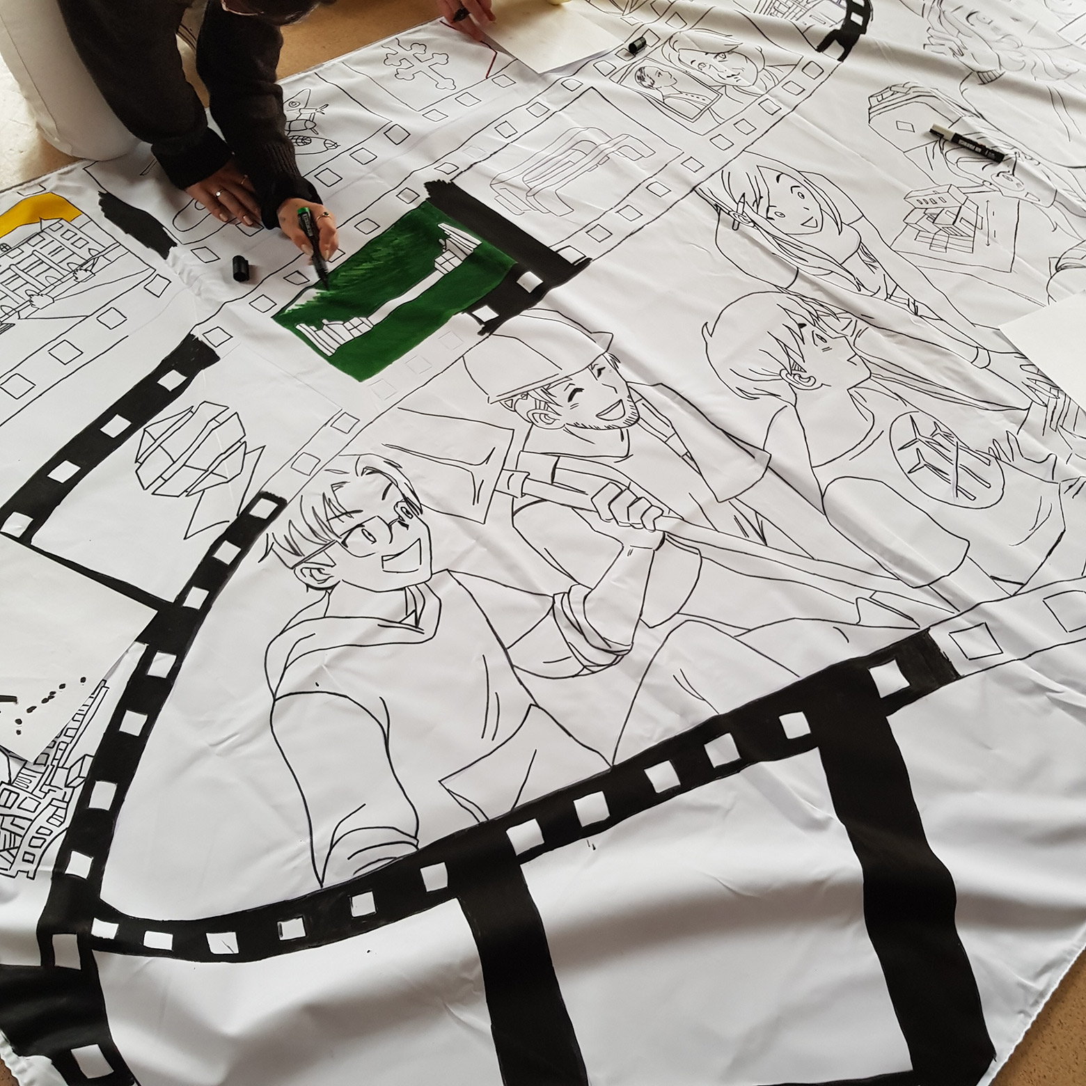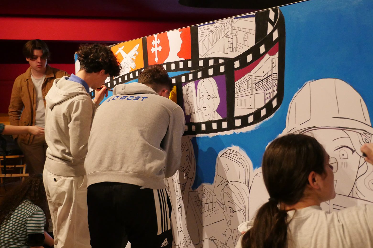 Sur cette trame, les élèves ont effectué les tracés définitifs et ont peint la toile de couleurs vives. Ce projet pédagogique a été réalisé dans le cadre du Parcours Éducation Artistique et Culturel intitulé « histoire de bahuts », lancé par le service Patrimoine et Inventaire de La Région Nouvelle-Aquitaine qui vise à faire travailler les lycéens sur l’histoire et le patrimoine de leur lycée.