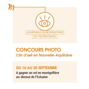 - Du 16 au 20 septembre : envoyez-nous une photo d’une des curiosités observées sur un de ces sites ouvert pendant les Journées du patrimoine. Les photos doivent être envoyées à l’adresse : patrimoine.jep2022@nouvelle-aquitaine.fr