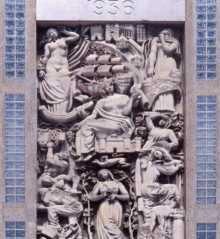 La Bourse du travail de Bordeaux (Gironde), inaugurée en 1938, a été voulue par le maire pour offrir un palais somptueux aux travailleurs, avec d'importants décors, comme ce bas-relief d'Alfred Janniot.