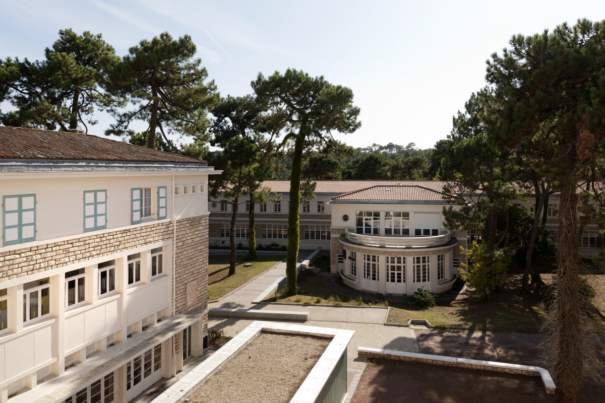 Entre 1947 et 1952, l’architecte Domenc, Grand prix de Rome, construit le lycée Grand Air d’Arcachon au cœur d’une pinède, selon les principes hygiénistes.