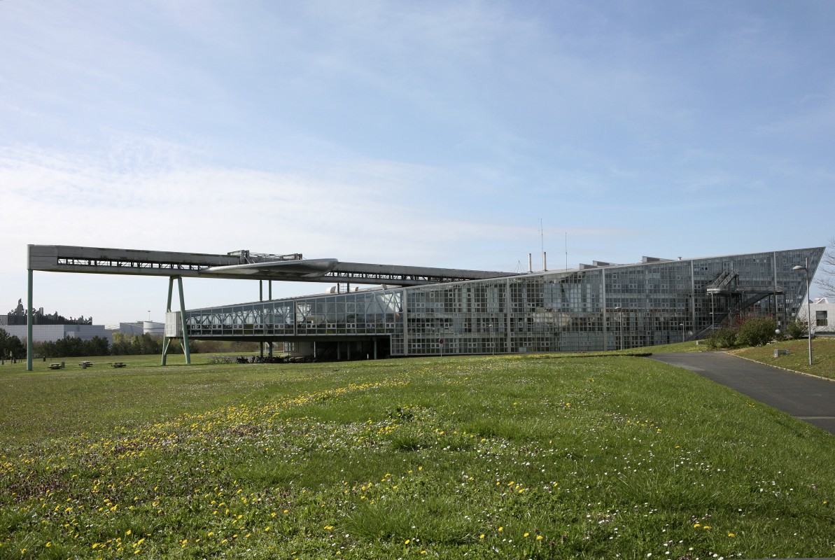 Appelé « lycée du futur », le lycée pilote innovant international du Futuroscope, à Jaunay-Marigny, ressemble à un vaisseau aérien de métal (1986-1987).