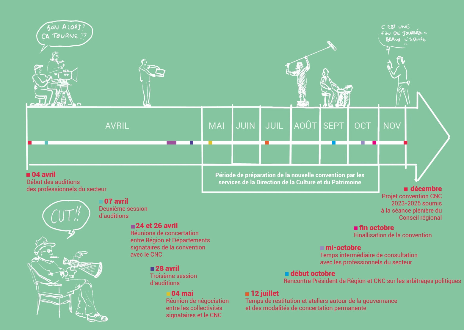 Le point d’orgue de cette démarche sera la journée professionnelle organisée à Bordeaux (Hôtel de Région) le 12 juillet prochain, tandis que des temps de consultation intermédiaires viendront ponctuer la finalisation de la prochaine convention CNC qui sera alors soumise au vote des élus des collectivités signataires en décembre 2023.