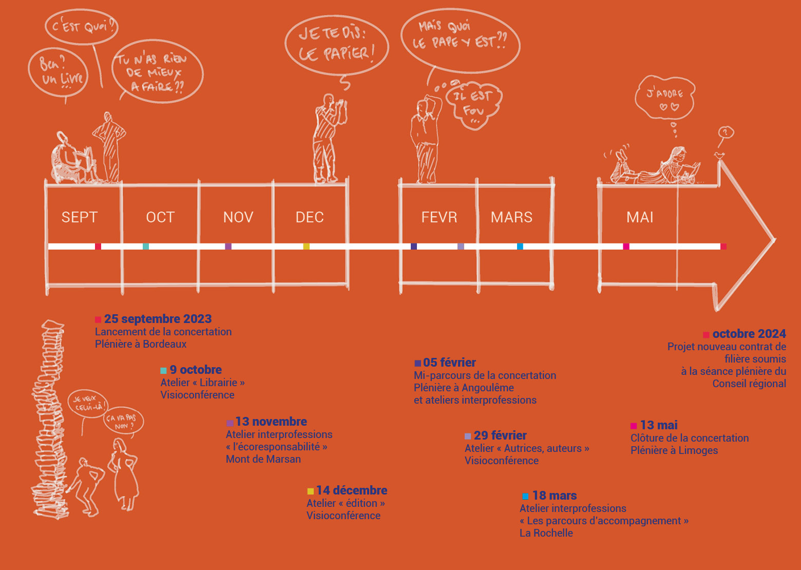 L’actuel contrat de filière Livre ayant été prolongé jusqu’à la fin de l’année 2024, la Région et l’ALCA – en partenariat avec le CNL et la DRAC – souhaitent prendre le temps de construire la prochaine convention 2025-2027 en concertation avec l’ensemble de la chaîne du livre.