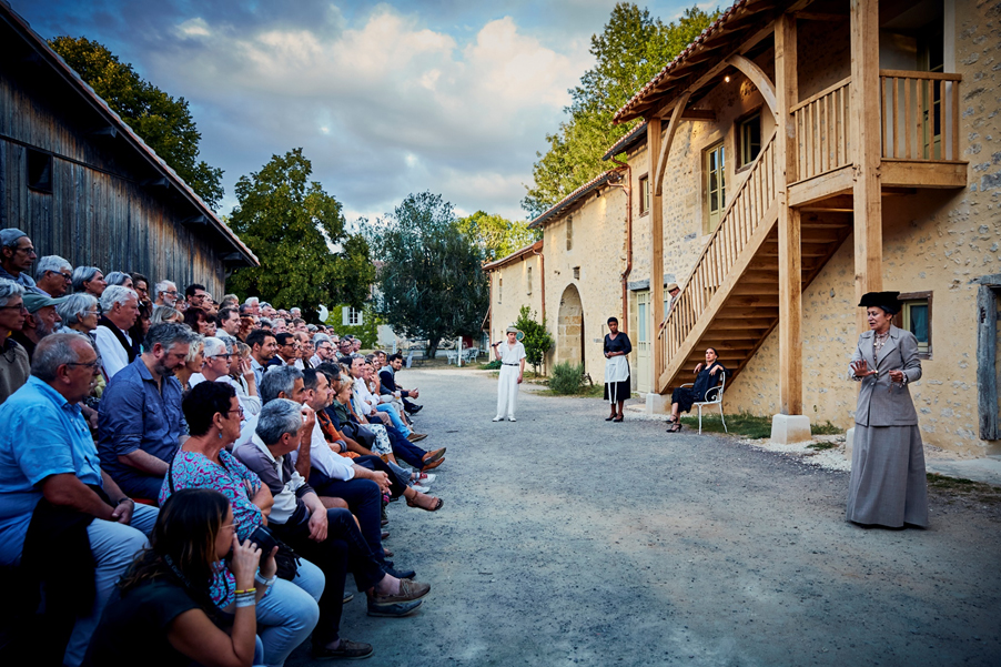 La compagnie Veilleur®, qui présentait lors de ce festival d‘été sa nouvelle création Le Tartuffe ou l’Hypocrite, a choisi de mettre en valeur les travaux en incluant dans sa mise en scène le balet charentais (escalier extérieur surmonté d’un auvent) créé dans le cadre de ces travaux.