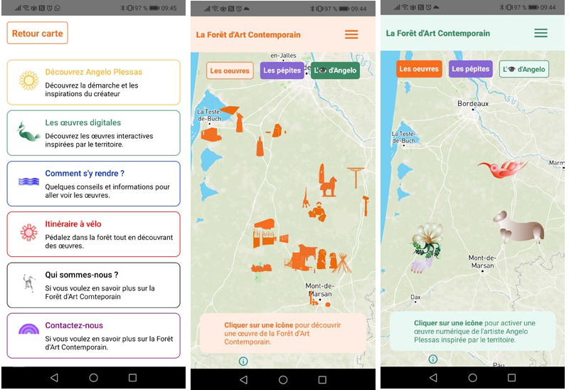 Captures d’écran de l’application de la Forêt d’Art Contemporain